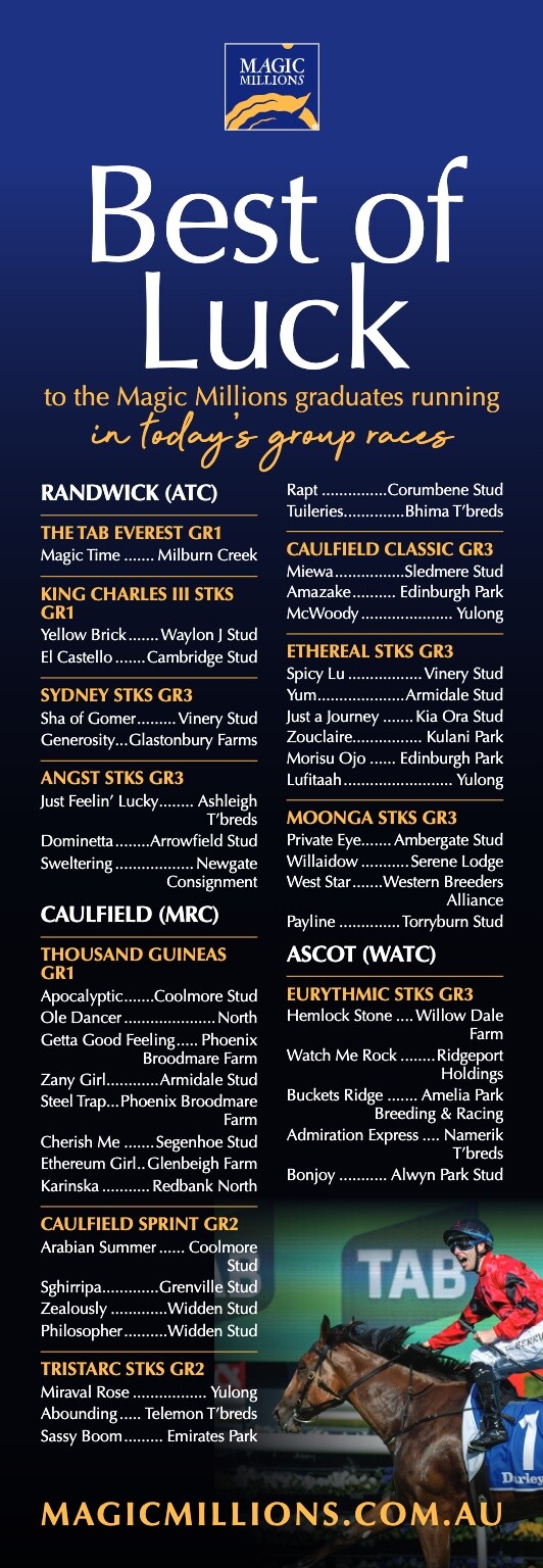 His main runners on Saturday’s Caulfield Cup card are the OTI Racing-owned Deakin (Australia) in the cup itself, and Guineas hopeful Ferivia (Astern) - who runs for the Brook family’s Saddlers Knife syndicate.