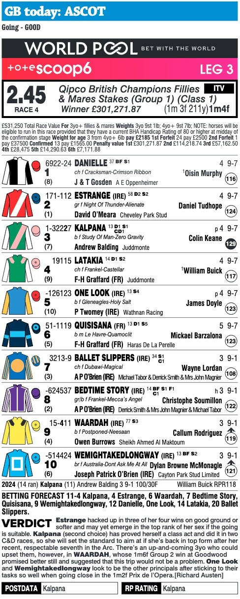 “Her work was good, we have taken the blinkers off again. She's just got to have the race shape with good speed and she can figure in the finish. Her best is definitely good enough, but we just only have been seeing it periodically.
