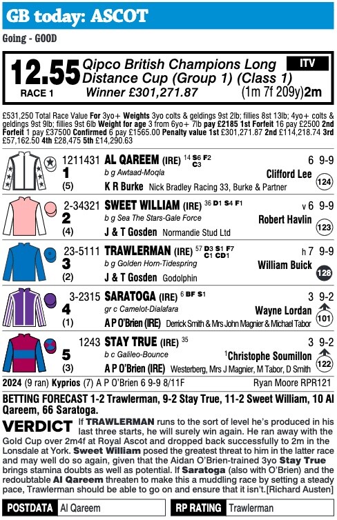 “I think the 2400 [metres] is perfect. We have yet to see if he can run two miles, but he's relaxing better. We've just had a little gear change of a kineton noseband and he's just dropping his head that bit better and coming back, so that's pleasing.
