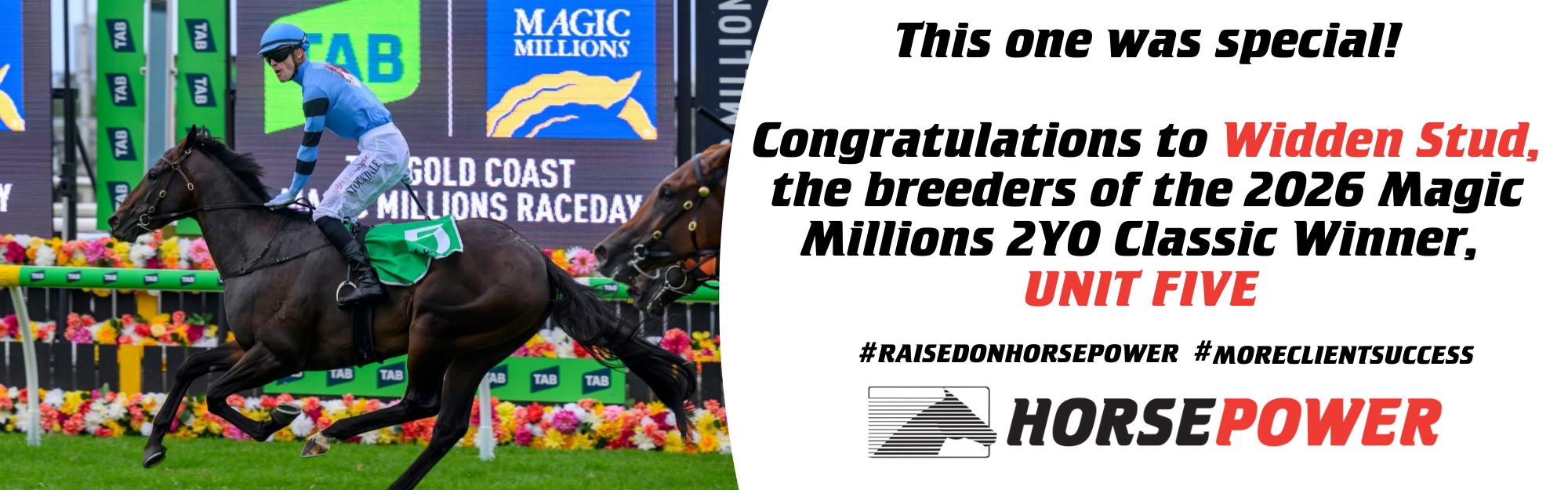 Ciaron Maher once again proved himself an exceptional trainer of juveniles when exciting colt Unit Five, a son of Widden Stud sire Supido (Sebring), claimed Saturday’s Magic Millions 2YO Classic (RL, 1200m) at the Gold Coast, becoming the first horse to land the race on only his second start.