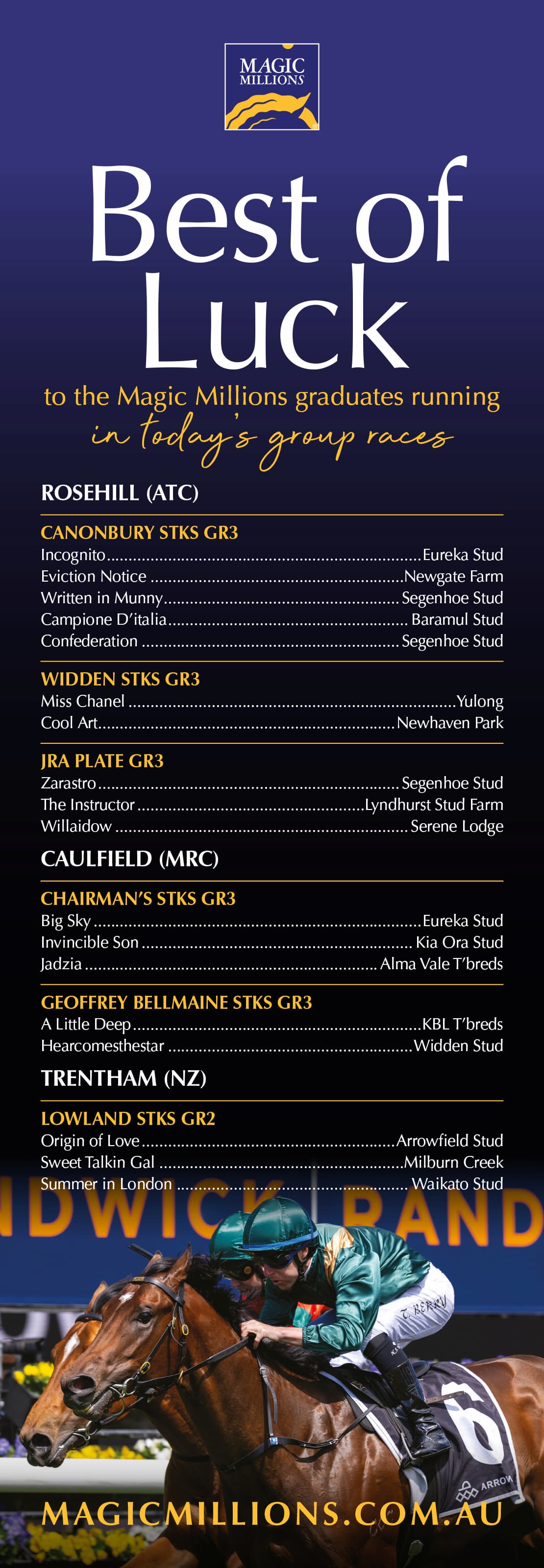 “We are very happy with the juveniles we have secured from Magic Millions and Karaka so far and we're gearing up to go again at Inglis Classic. It's been very good and the horses we're buying are selling down well. We're very happy with the athletes bringing home.”