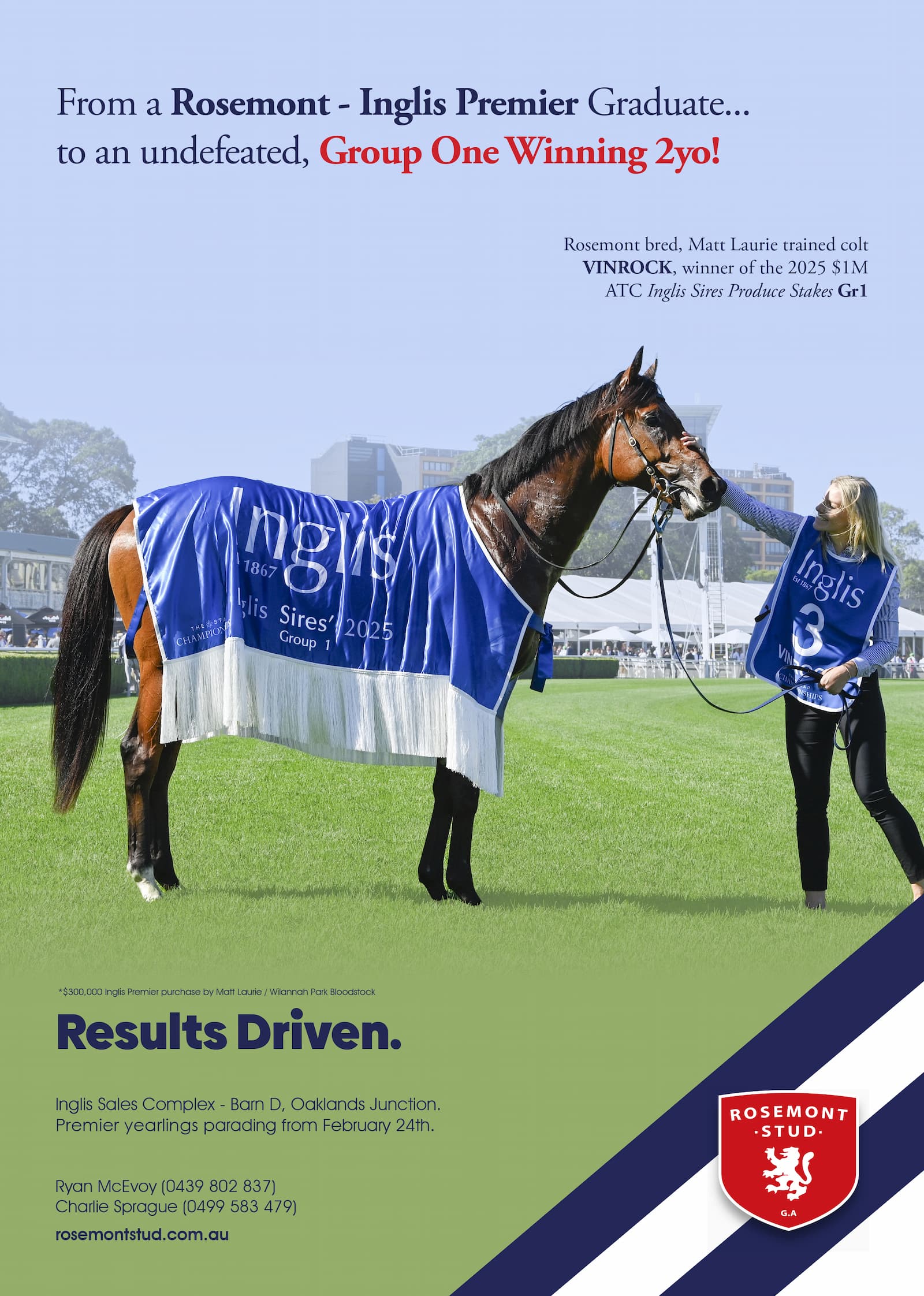 Confident Marine One’s first crop can deliver early racetrack results, Mogumber Park has launched a ‘Buy and Win Bonus’, where purchasers of a Marine One yearling from the draft will receive a $20,000 credit towards a 2027 Mogumber Park yearling if that horse wins a two-year-old race before Magic Millions 2027.