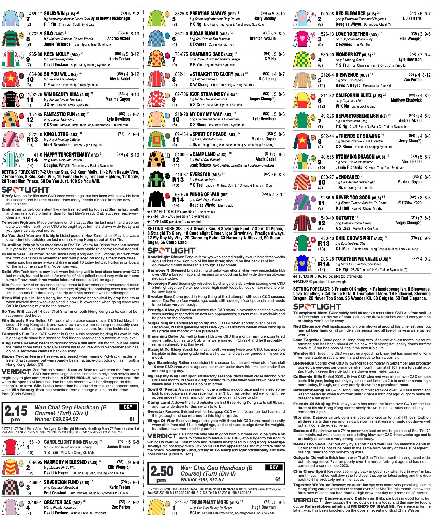 “It’s going to be very hard to win but I’ve experienced plenty of surprises in racing, nice ones as well as not so nice ones. That’s the nature of the game, you get used to disappointment but if she can finish in the top three, then I’ll be very happy.”