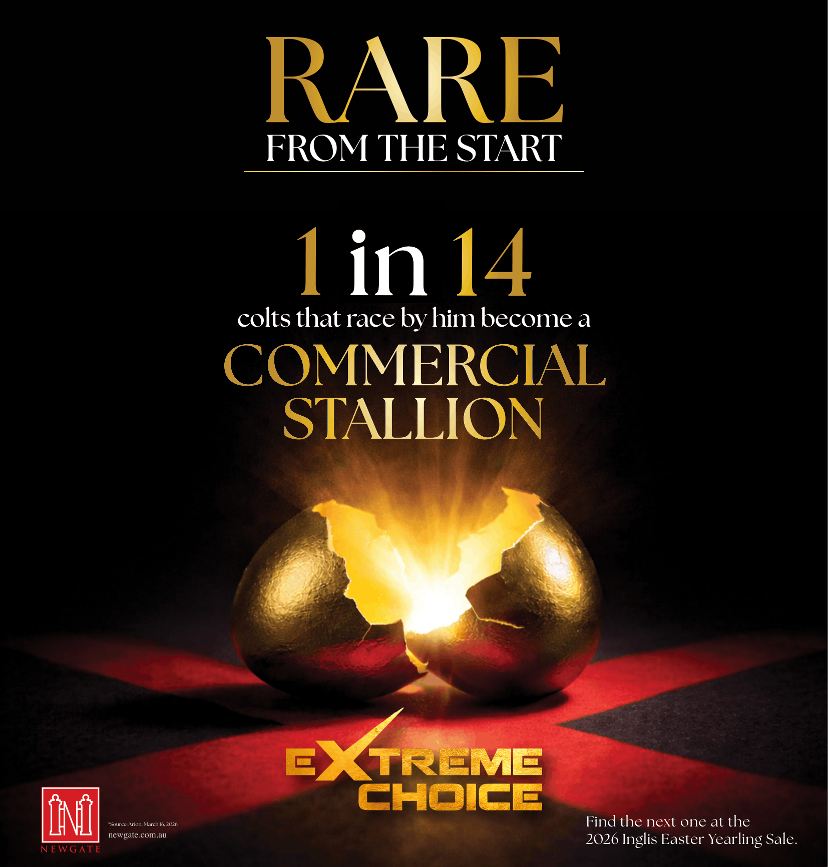 The thrilling appeal of Extreme Choice (Not A Single Doubt) and the resilience of the Inglis Easter yearling market were on show on opening day at Riverside, with Newgate Stud’s star stallion holding the top and equal-second lots spearheaded by a $3 million colt.