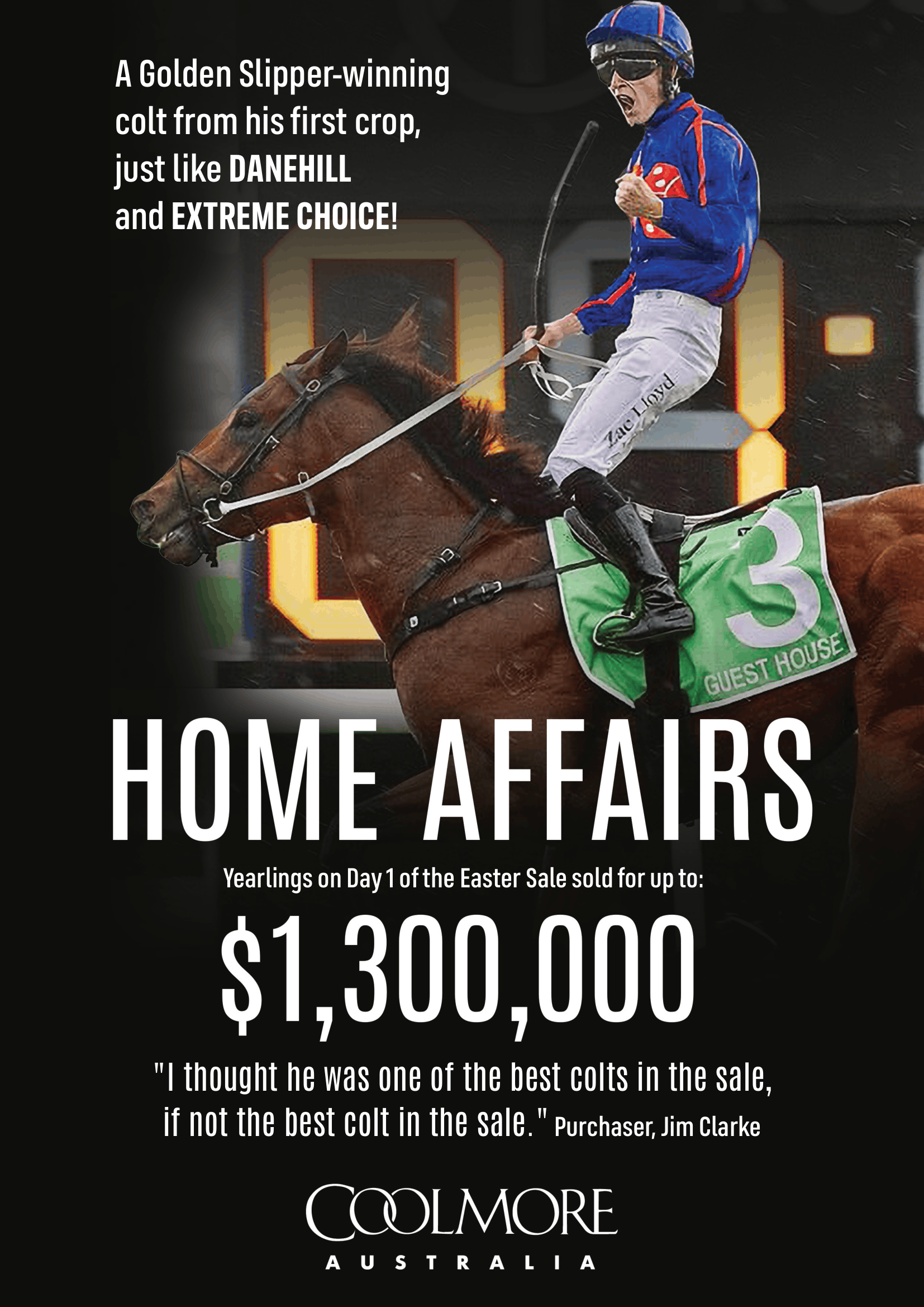 “Like everybody else here, we’ve done our due diligence. We’ve gone around and looked at all the fillies and she was our pick of the sale. She’s sold accordingly,” said McGrath. “It’s a lot of money, but Extreme Choice is obviously a freak statistically.”