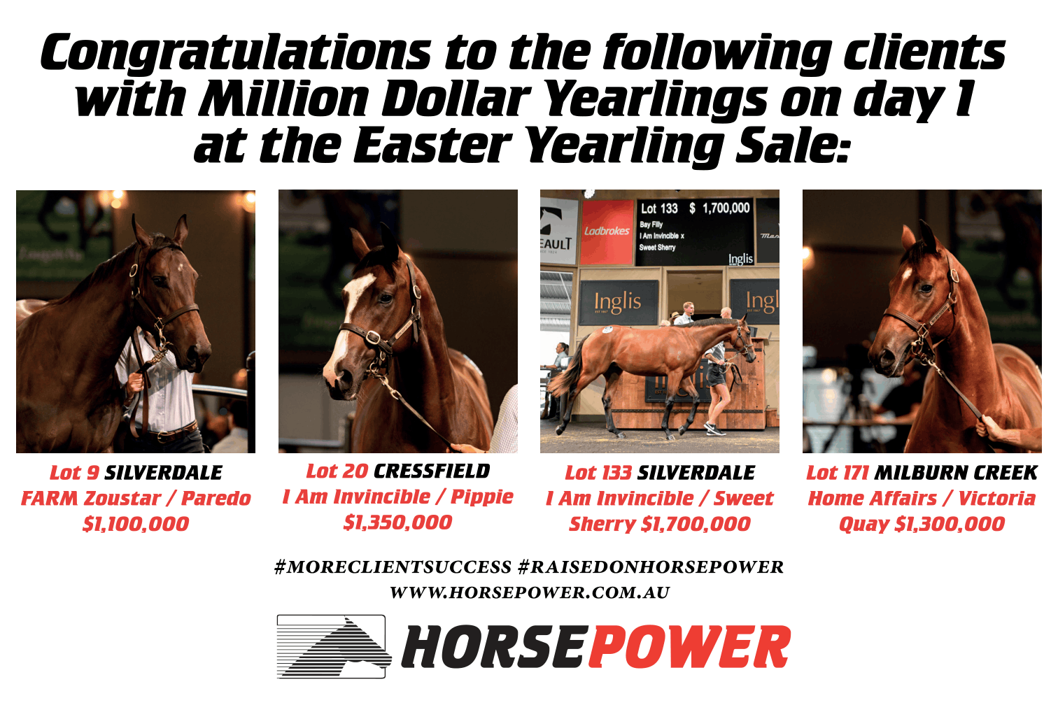 I Am Invincible’s Lot 20 fetched $1.35m - a colt out of dual Group 1 winner Pippie (Written Tycoon), sold from Cressfield’s draft to the China Horse Club and Newgate.