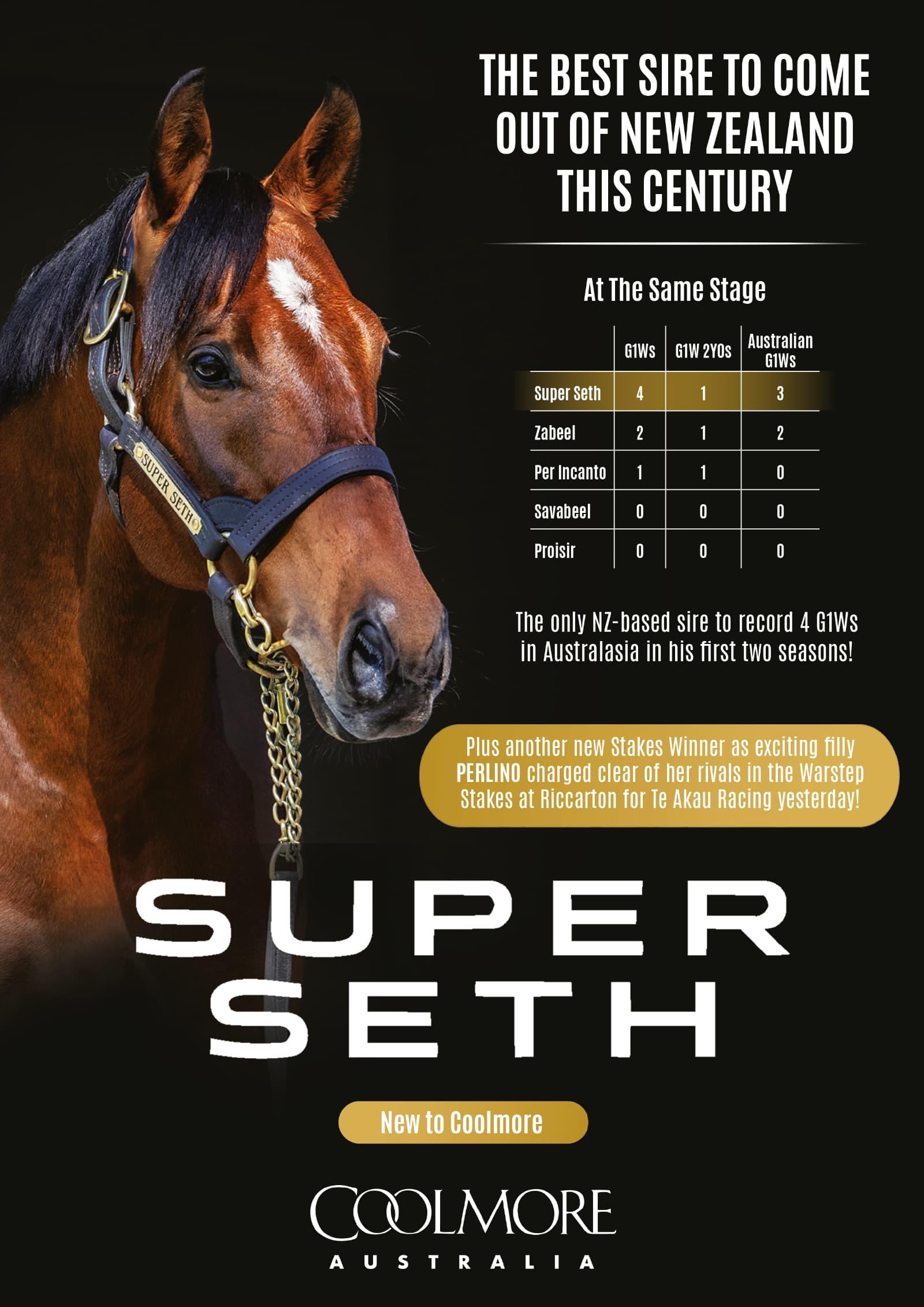 A proven and versatile young sire, Super Seth has had yearlings sell for up to $950,000 in Australia