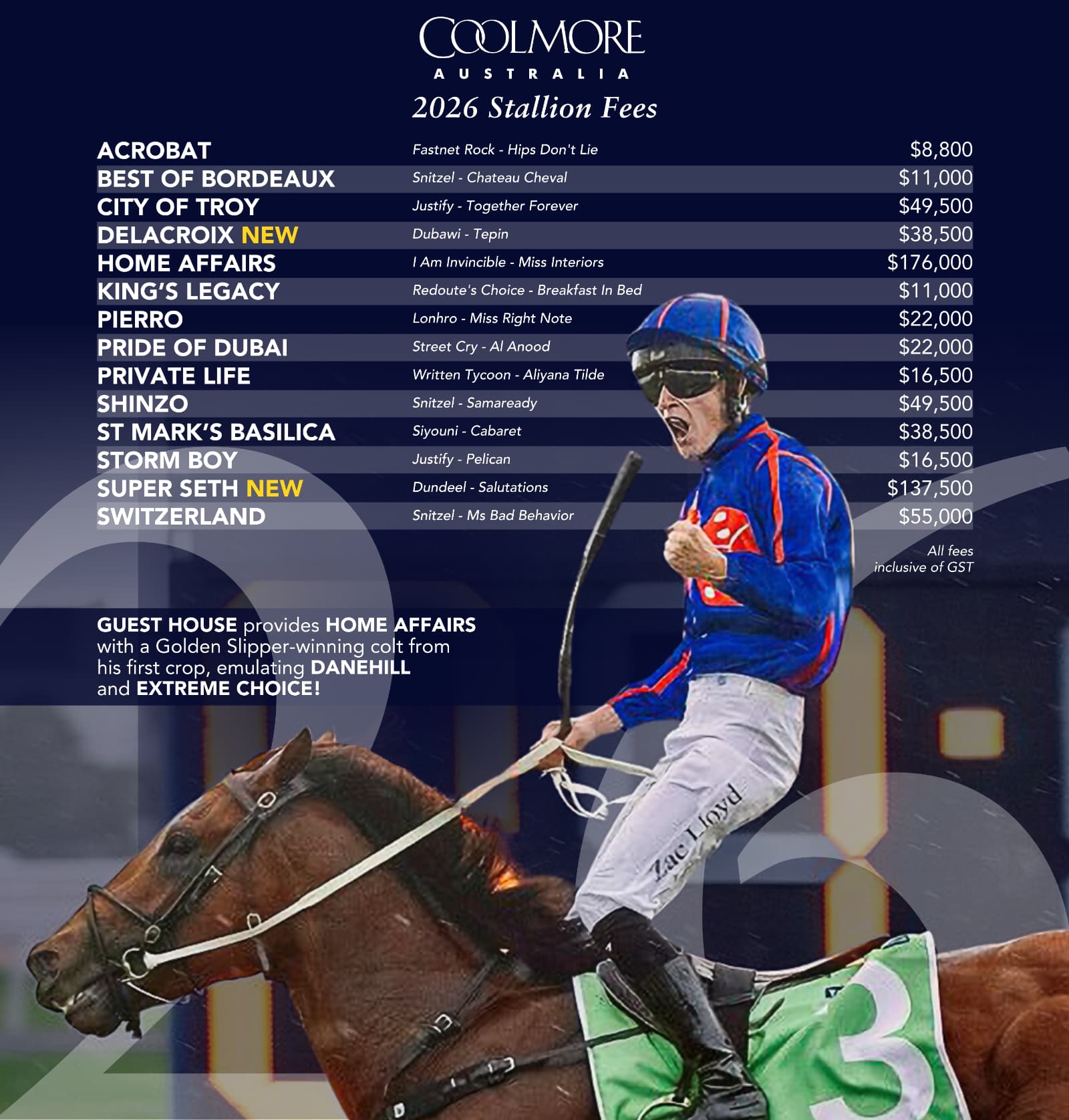 Following a blistering start to his stud career, Home Affairs (I Am Invincible) will head Coolmore