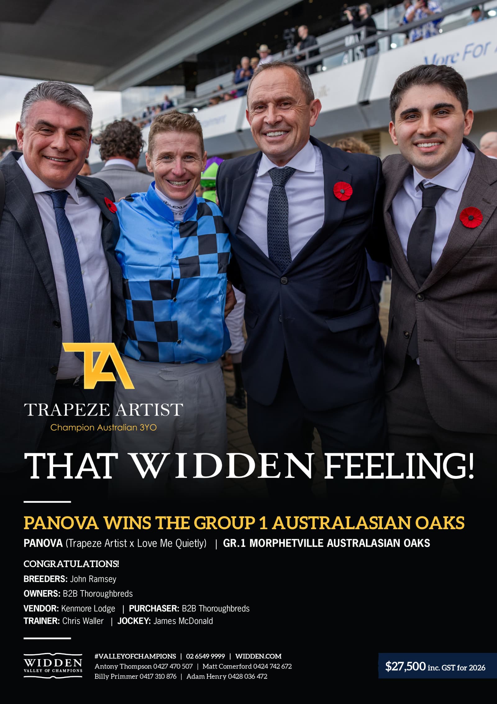 Australia’s roster for 2026 at a fee of $176,000 (all fees inc. GST).
