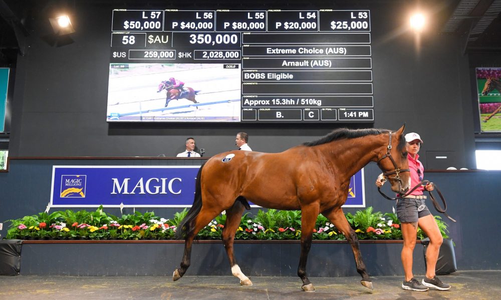 A colt by sire of the moment Extreme Choice (Not A Single Doubt) will head to Victoria after Baystone Farm’s Dean Harvey made a strategic call to target the juvenile at yesterday’s Magic Millions 2YOs In Training Sale on the Gold Coast in a market which proved stronger than many were expecting.