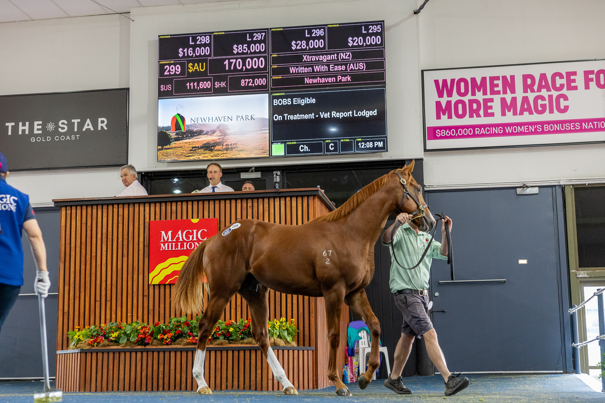 A quarter of Hedge’s Adelaide haul was for the Williamses with the Newhaven Park-consigned Xtravagant first foal out of the stakes-performed juvenile winner Written With Ease (Written Tycoon).