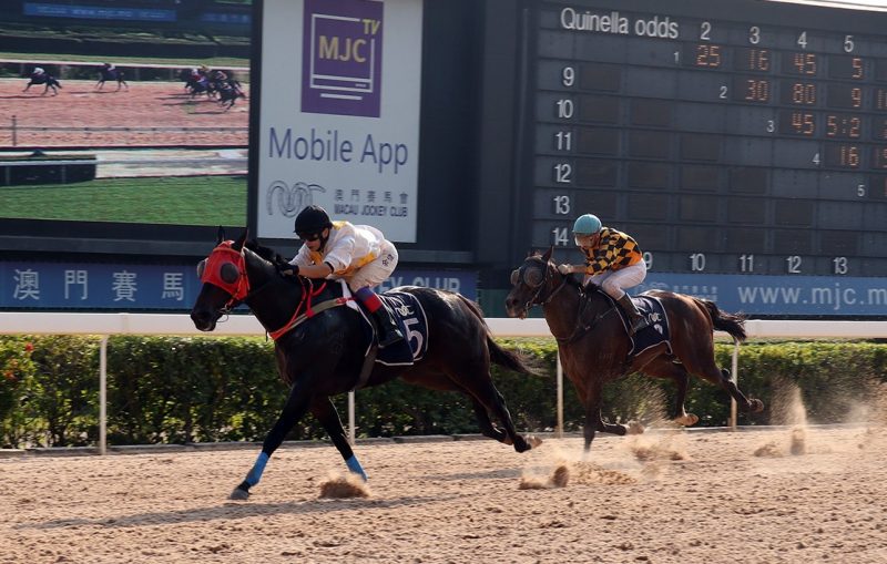 Macau’s sand superstar Golden Conqueror (Rothesay) made it eight wins from nine starts on the sand surface with a dazzling display of speed in winning Saturday’s Class 1 over 1050 metres. Ridden by regular rider Roger Yu, Golden Conqueror after flying the gates and taking command of the race, proceeded to give his rivals a... Read More