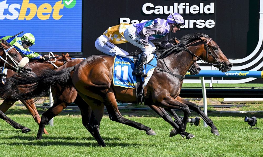 Hayasugi (Royal Meeting) added a gilt edge to her sire’s buoyant start to stud life – and a juicy twist over his future – with another brilliantly defiant triumph as the fillies struck back in yesterday’s Blue Diamond Stakes (Gr 1, 1200m) at Caulfield.