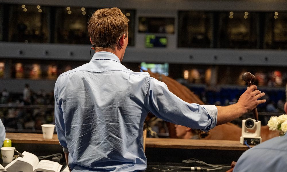 He is clear, concise and he has the right voice. From my vantage point, and I have witnessed thousands of horses go through the ring over the past few years, not noticing a change of auctioneer says a lot.