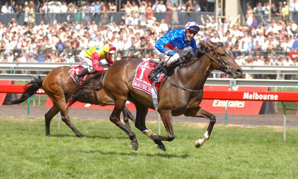 It would take another 12 months before she returned to the winner’s stall — and that win would be her first Melbourne Cup in 2003. Starting at $8, Makybe Diva carried just 51 kilograms under Boss and powered away to claim the great race for David Hall.