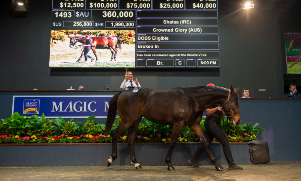 The half-brother to Group 1-winning sire Hallowed Crown (Street Sense) by Arrowfield Stud’s shuttler Shalaa (Invincible Spirit), the last lot to be offered in Book 1 of the Magic Millions National Yearling Sale, last night sold for $360,000 to put an exclamation mark on another show of the industry’s ability to defy wider economic factors.
